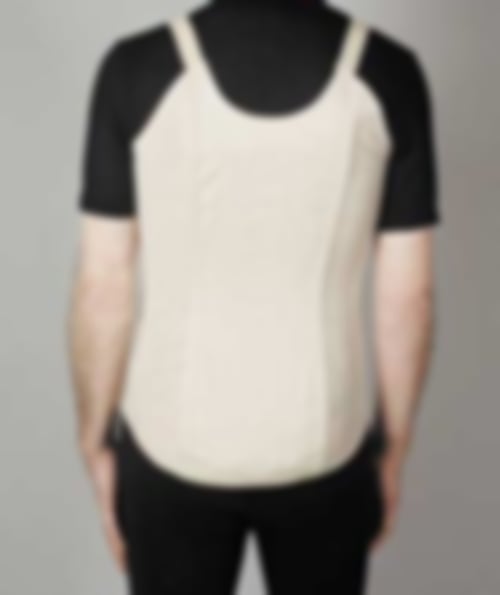 Das Herren-Rumpfstützmieder Modell 300 wird unter Einschluß des Oberkörpers gearbeitet. Die Stützwirkung wird durch feste Materialien gewährleistet. Das Mieder ist somit als Stützmieder bei sportlichen Aktivitäten geeignet.